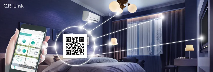 新技術「QR-Link」は、QRコードを読み込むだけで、賃貸物件や客室に設置されているIoT製品(※2)の一括操作・管理を可能にする、日本初の独自技術です。