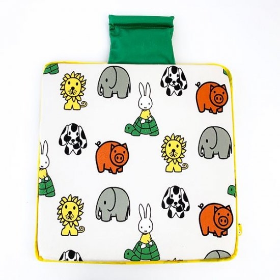 おつぎは四角いこのクッション。じつはカー用品でもあります♪デザインはミッフィー単体とアニマル柄の2種類です。