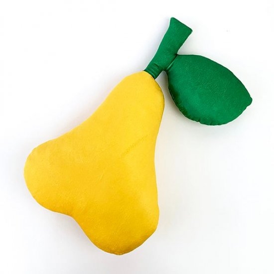 まずは、この絵本に出てきそうな洋ナシのクッションから♪かわいいのはモチロンですが機能的でもあります。このクッションをひっくり返してみると、、、