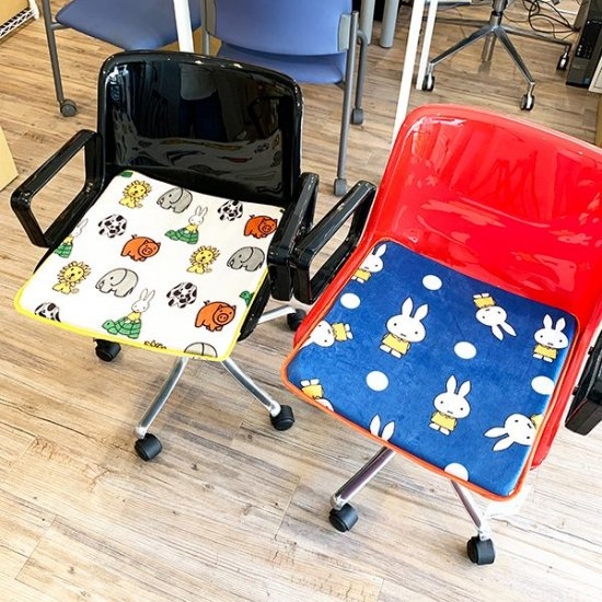 ちょうどいい厚みが気持ちよくこちらも低反発。車内の各シートに置けばミッフィー空間のできあがり♪お家の椅子に置いても、床に置いて座布団としてもお使いいただけます。