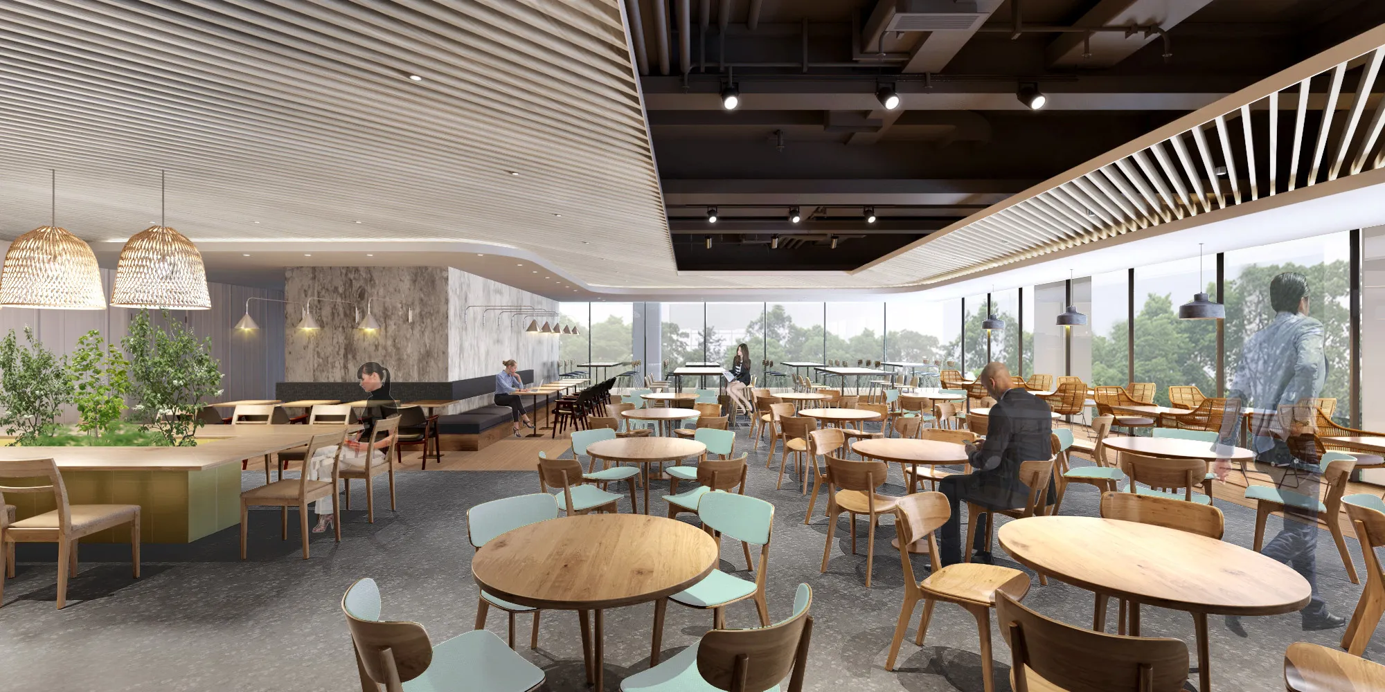 栄養士が監修する毎日食べても飽きない定食スタイルのランチやスムージー、デトックスドリンク等の体に優しい飲み物を販売。飲食スペースは、1人用のカウンター席からランチミーティングができるボックス席まで多様な座席を設けるとともに、弁当の持ち込みも可能とし、自分らしいスタイルでランチ等が楽しめるスペースとします。
