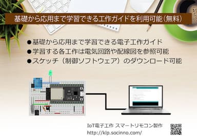 株式会社SOCINNO(ソシノ)(所在地:京都府京田辺市、代表取締役:山中 清志、以下 SOCINNO)は、IoT製品などIT技術を活用しICT社会の実現に向けて取り組んでいます。この度、電子工作を行いながら基礎から応用まで楽しく学習できる「IoT電子工作 スマートリモコン製作キット」を発売いたします。