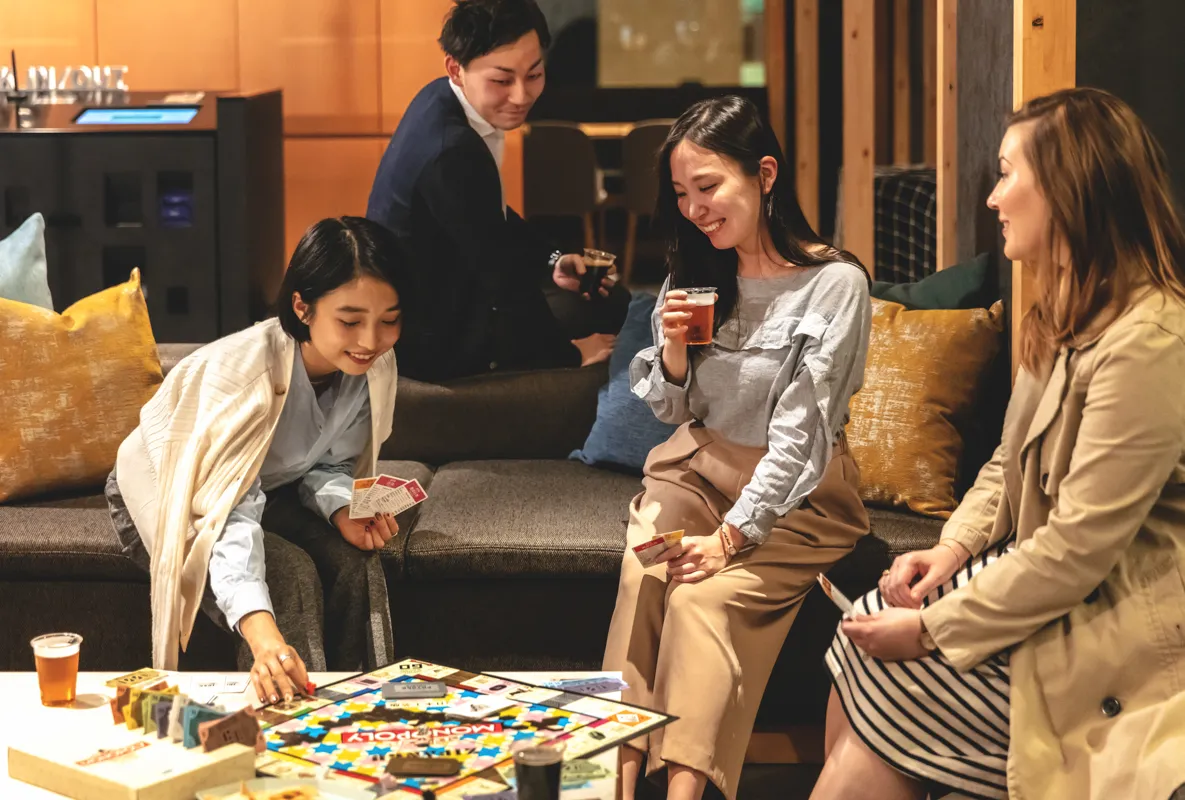 旅行者が気軽に参加できるイベント、「OMO TIME」を毎晩開催します。OMO TIMEでは旅行者のテンションを、さらに盛り上げるようなアイテムや「ちょい飲み」ができるリーズナブルなアルコールドリンクなどを用意しています。日替わりで映画上映や音楽演奏も開催します。仲間同士でお酒を片手に、ゲームや心地の良い音楽を通して会話も弾み、旅の思い出が深まります。客室だけでなく、パブリックスペースでも旅のテンションを上げる仕掛けが満載です。