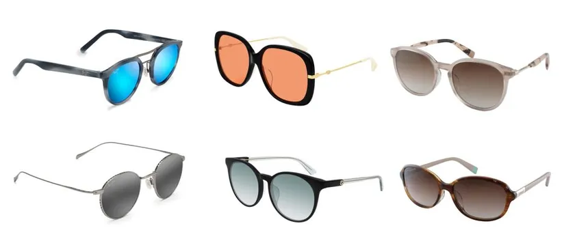 国内では取扱店の少ないハワイ生まれのサングラスブランド「マウイジム」ほか、人気の海外ブランドがいっぱい(写真左列から、マウイジム、GUCCI、FURLA)