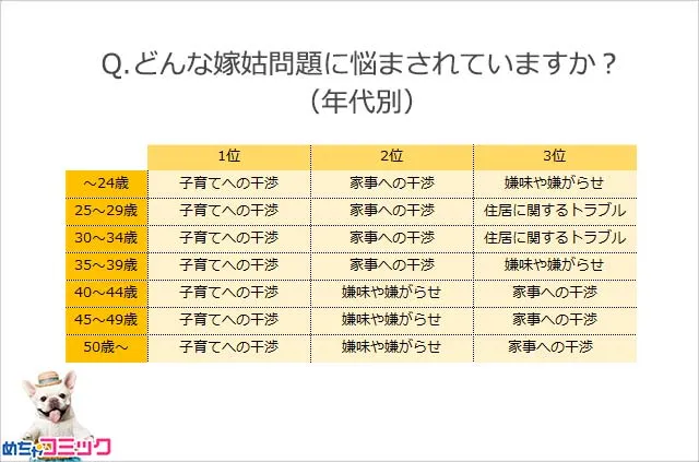 2.嫁姑問題が一番多いのは、年代問わず「子育てへの干渉」
