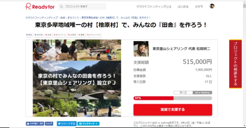 https://readyfor.jp/projects/tokyo-satoyamasharing