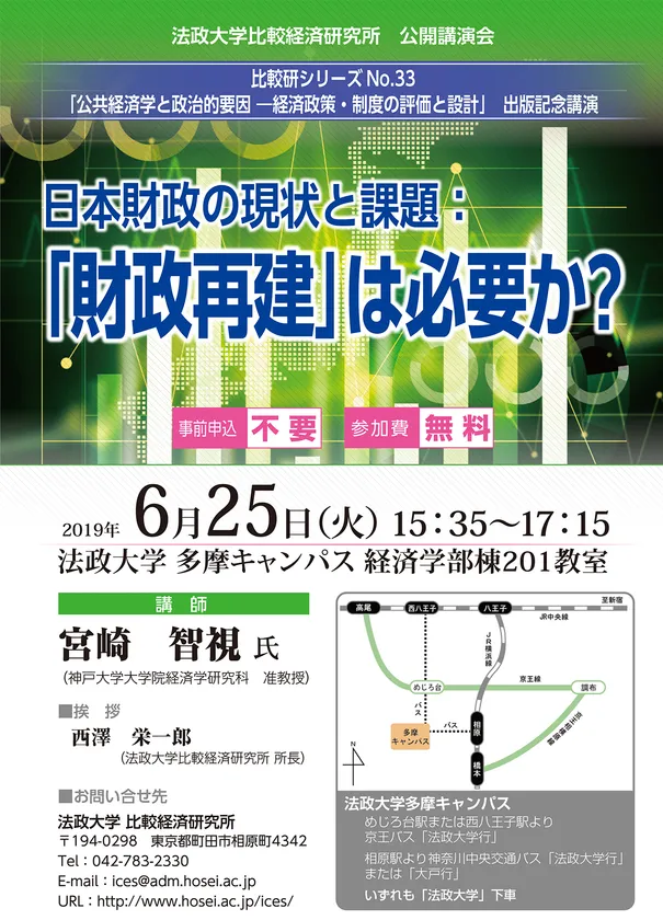 公開講演会「日本財政の現状と課題:『財政再建』は必要か?」 法政大学多摩キャンパスで6月25日(火)開催