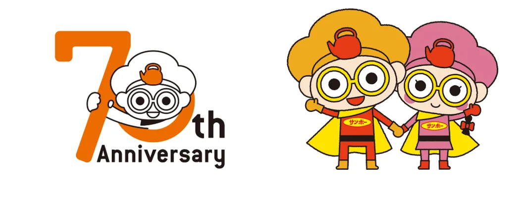 サンポー食品株式会社(所在地:佐賀県三養基郡基山町 代表取締役社長:大石 忠徳)は、6月9日(日)に設立70周年を迎えます。令和元年という新しい時代の始まりに設立70周年を迎えることを記念し、サンポー食品のキャラクター「ヤカンちゃん」のデザインをリニューアルし、新たに妹として「ピッピちゃん」が仲間入りします。また、設立70周年を記念した数量限定のスペシャルな新商品を10月に発売します。この新発売に合わせて、消費者キャンペーンを実施します。乞うご期待ください。