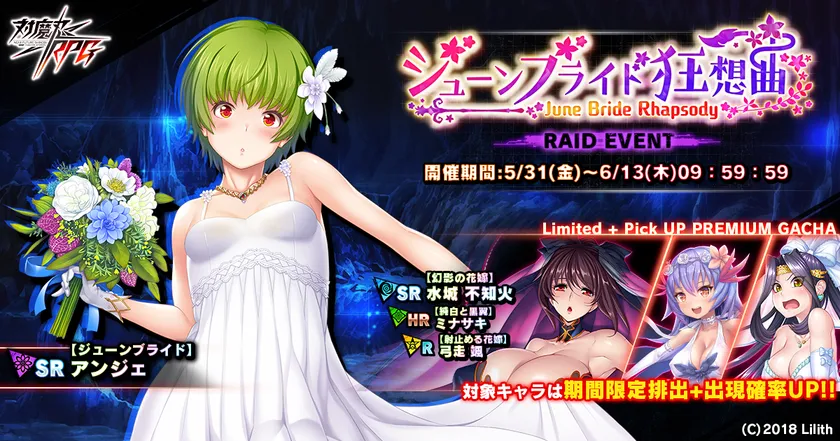 近未来くノ一ロールプレイングゲーム『対魔忍RPG』にて 期間限定イベントが5月31日(金)~6月13日(木)に開催! イベント報酬で【ジューンブライド】アンジェをGET! ~同時にピックアップガチャ、アリーナがプレオープン~