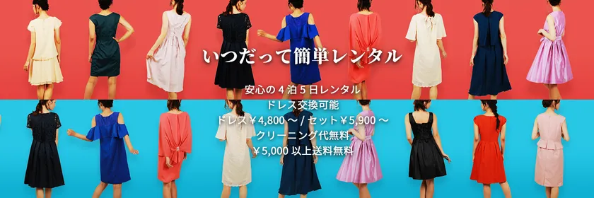 利用料金 : ドレス単品4,800円~(税込)、セット商品5,900円~(税込)
