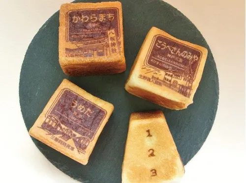 阪急電車の駅名看板をモチーフにした「とびばこパンミニ」が10種類(梅田駅/十三駅/西宮北口駅/王子公園駅/神戸三宮駅/川西能勢口駅/宝塚駅/烏丸駅/河原町駅/嵐山駅)!!