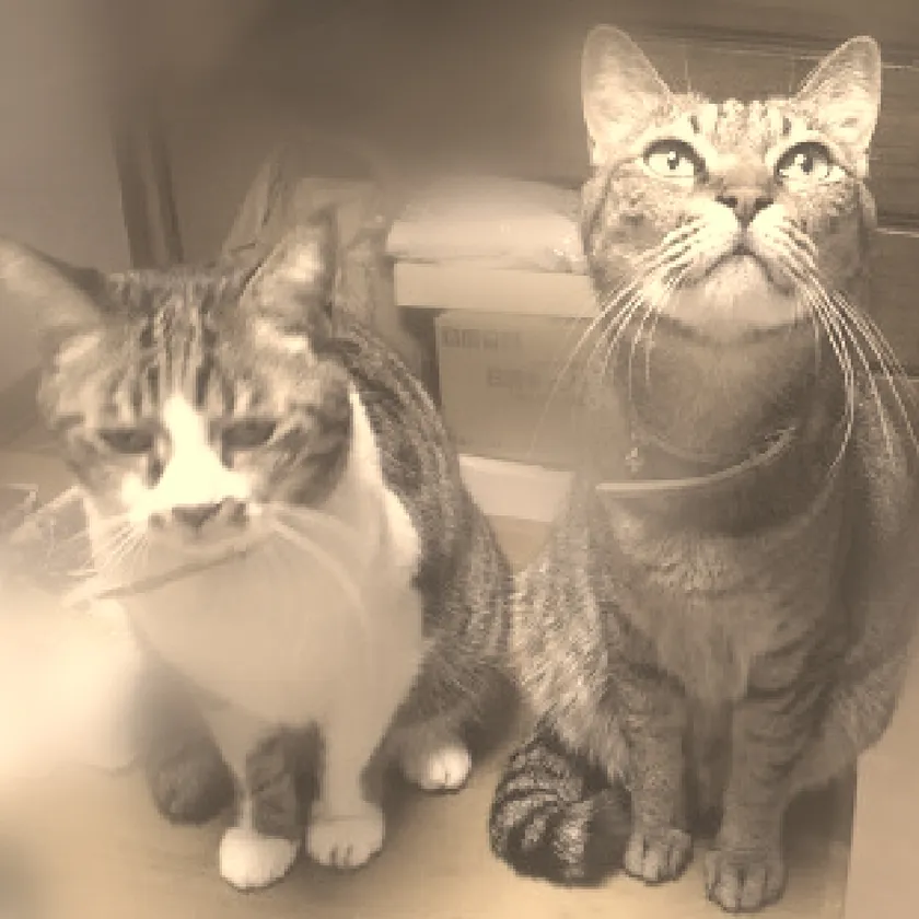 (7) 開運グッズ:参加者にはもれなく、代表が自宅で飼っているリアル招き猫「ミニ」と「ロト」の写真をプレゼント!
