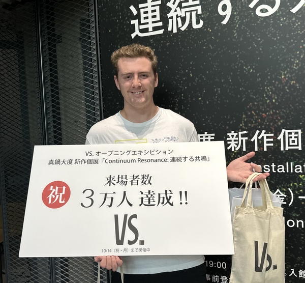 現在、VS.のオープニングエキシビションとして、日本を代表するアーティストである真鍋大度による新作個展「Continuum Resonance(コンティナム・レゾナンス):連続する共鳴」を、事前申込制・入場無料で開催中です。本展は、テクノロジーとクリエイティビティの融合により、見る人のインスピレーションをかきたて、新しい価値体系と世界観の提供を目指すVS.の象徴となる展覧会です。会場では、合計34台のプロジェクターと41台のスピーカーによる超高精細なサウンドシステムを使い、VS.全空間に広がる4つの新作インスタレーションを体験できます。