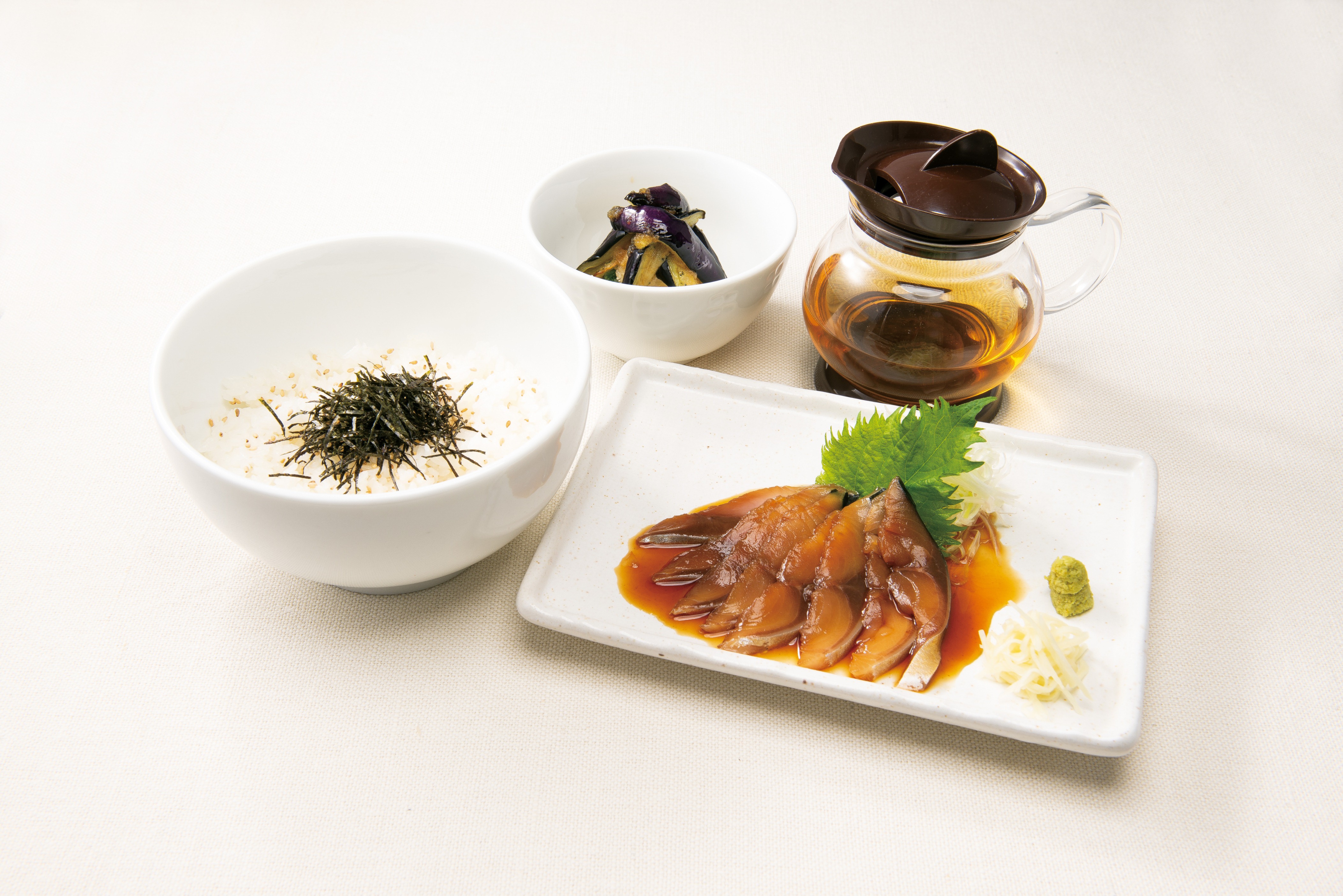 まずはそのまま、わさびや生姜などの薬味で味を変え、冷たい出汁をかけて茶漬け風に。お好みの食べ方で最後までお楽しみいただけます。