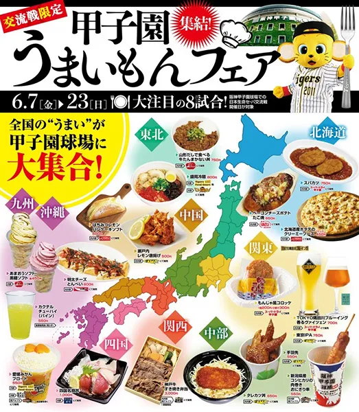 日本生命セ・パ交流戦期間中、阪神甲子園球場で開催する試合で、全国各地の名物グルメなどを期間限定で販売します。