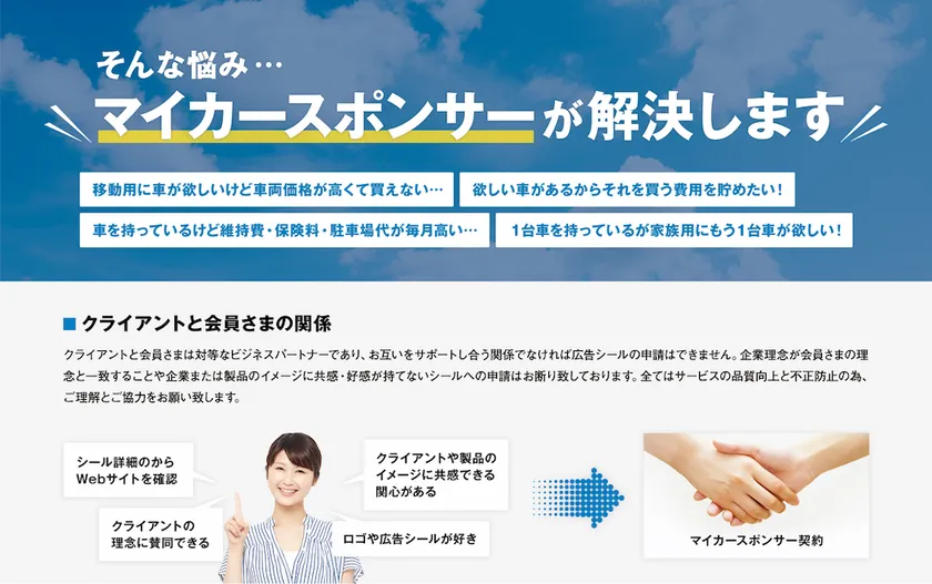 交通広告・権利収入サービス『マイカースポンサー』 全国版の新規会員募集開始! マイカーにお気に入りのシールを貼ってスポンサー料をGET!