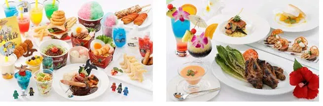 「レゴランド・ジャパン」では、「レゴニンジャゴー・ワールド」のオープンに合わせて、ニンジャをモチーフにしたフードメニューが登場いたします。また、夏の暑い時期にも美味しく涼んでいただける“フラッペ”や“こどもカクテル”などカラフルな夏メニューもご用意。また、「レゴランド・ジャパン・ホテル」でも、夏に合わせた限定メニューが登場し、大人もお楽しみいただけるフードをご提供いたします。