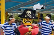 水遊びの前にはやっぱり準備体操が必要!お兄さんとお姉さんが楽しい準備体操を教えてくれるプラクティスタイム。「レゴランド」のキャラクター、ブラック・ビアも登場します。