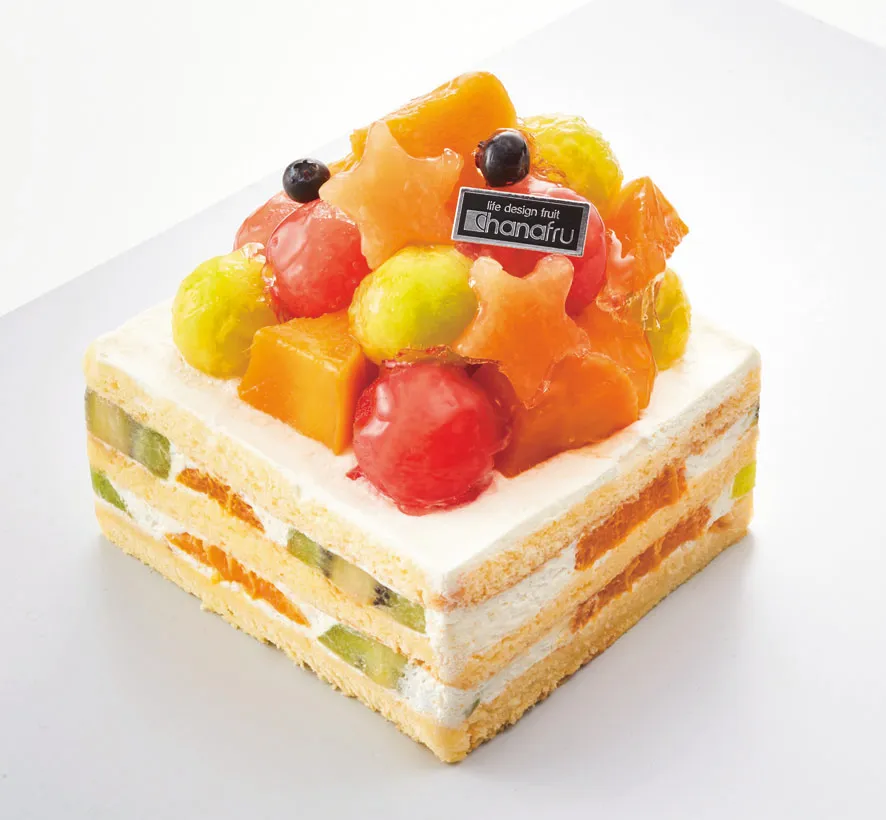 フルーツを挟んだスポンジケーキの上に、星型にカットしたフルーツを華やかに飾りました。