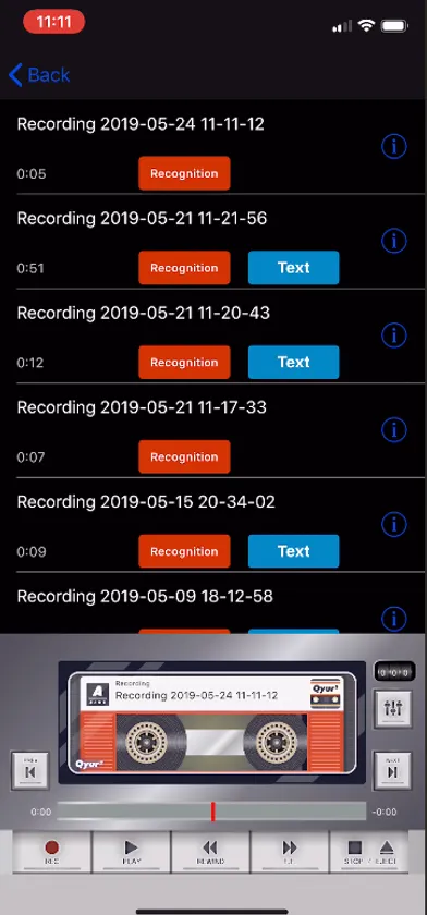 録音した音声を音声認識で自動文字起こし機能を搭載! iOS用カセットレコーダー型アプリ「Qyur2(R)(キュルキュル)」