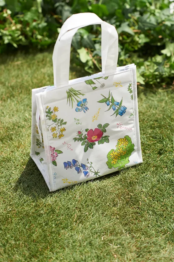 白地に描かれた可憐な野の花。この包装紙を目にした途端、心ときめいてしまうという女性はきっと多いことでしょう。広く全国で愛される北海道の菓子メーカー『六花亭』が、この度クロワッサンと初コラボレーション。クロワッサン通巻1000号の発売を前に、夢のような企画が実現しました。愛らしい包装紙の柄を、そのまま保冷バッグに。350mlのペットボトルが6本入る充実の収納力。バーベキューや屋外でのレジャーに、日々のお弁当バッグにと、この夏、活躍してくれること間違いなしです。