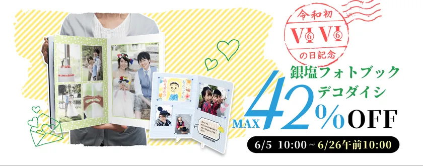 株式会社福多デジタルフォト(本社:福岡県福岡市博多区/代表取締役:佐野 貞昭、以下:福多DP)が運営するネットプリント サービスブランド『vivipri(ビビプリ)』は、令和時代となって初となる「viviの日」を本日6月6日に迎えました。また「viviの日」を記念してフォトブックおよびフォトブックJr.デコダイシのMAX42%オフキャンペーンを開催中(期間:6/5~6/26午前10時まで)です。