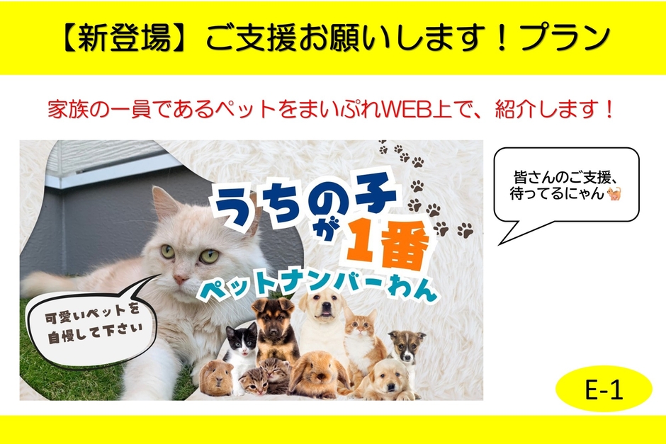 ・「うちの子が1番 ~ ペットナンバーわん ~」掲載プラン。「大切な家族である“うちの子”を、地域で紹介したい」そんな声をカタチにしたリターンです☆