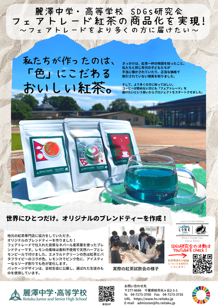 麗澤中学・高等学校(千葉県柏市/校長:櫻井 讓)のSDGs研究会「EARTH」が、フェアトレードで取引されたネパール産の紅茶を使用して、オリジナルのブレンドティーの商品化を実現しました。