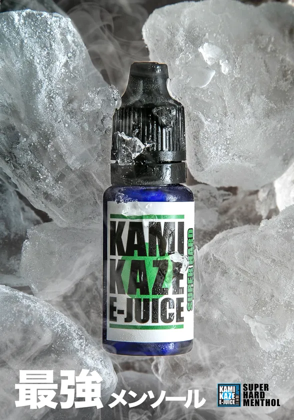 「KAMIKAZE E-JUICE」は全20種。なかでも爽快で強烈なスーパーハードメンソール(KAMIKAZEシリーズ売上NO.1)は、夏本番間近のこの季節にお勧めの商品です。
