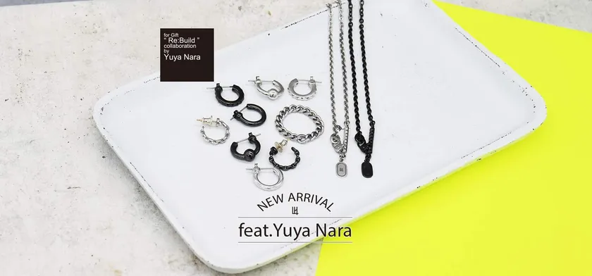 同モデルのネックレス・slendery chain “Yuya Nara”から拾ったスタッズバーをメインに作ったピアスは、ストリートやロックの空気をより力強く漂わせるデザインに仕上がりました。