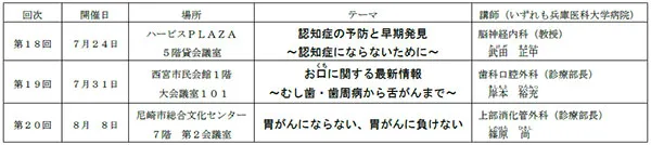 祝20回達成! 開催5年目となるこの夏も 毎回人気の「阪神沿線健康講座」を開催! ~過去17回の参加者アンケートの中でご要望の声が多かった 三つのテーマについて大学病院のドクターが詳しく解説~