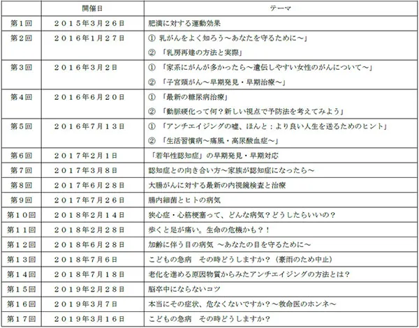 (参考)過去の「阪神沿線健康講座」のテーマ