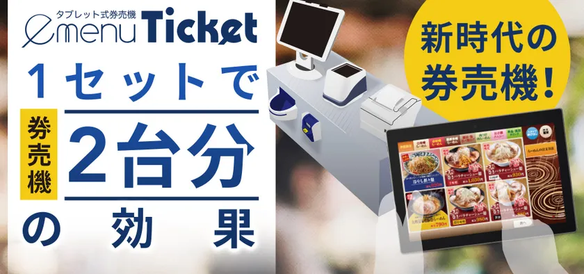ラーメン店向けタブレット式券売機「e-menu Ticket」販売開始 ~1セットで発券機2台分の効果~