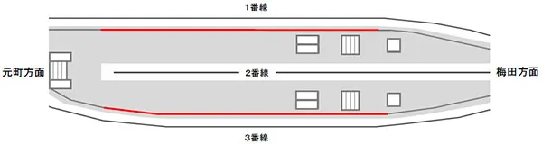 (注)2番線は、阪神の車両と近鉄の車両が停車し、各々の扉位置が一定ではなく現時点では可動式ホーム柵の設置が技術的に困難であるため、今後も設置に向けた検討を継続していきます。