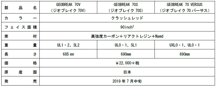 ヨネックスは、"ヨネックス史上最高の威力"と"瞬時に包む柔らかい打球感"をコンセプトとしたソフトテニスラケットの新シリーズ「GEOBREAK(ジオブレイク)」から中上級者を対象とした、前衛向けの「GEOBREAK 70V」、後衛向けの「GEOBREAK 70S」、前衛・後衛どちらにも対応するオールラウンドモデル「GEOBREAK 70 VERSUS (バーサス)」を 2019年7月中旬より発売いたします。