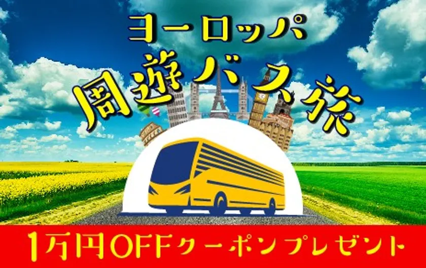 現在、6月30日(日)までに公式サイトより「ヨーロッパ周遊バス旅」をご予約の方全員に「10,000円OFFクーポン」をプレゼントするキャンペーンを開催中です。