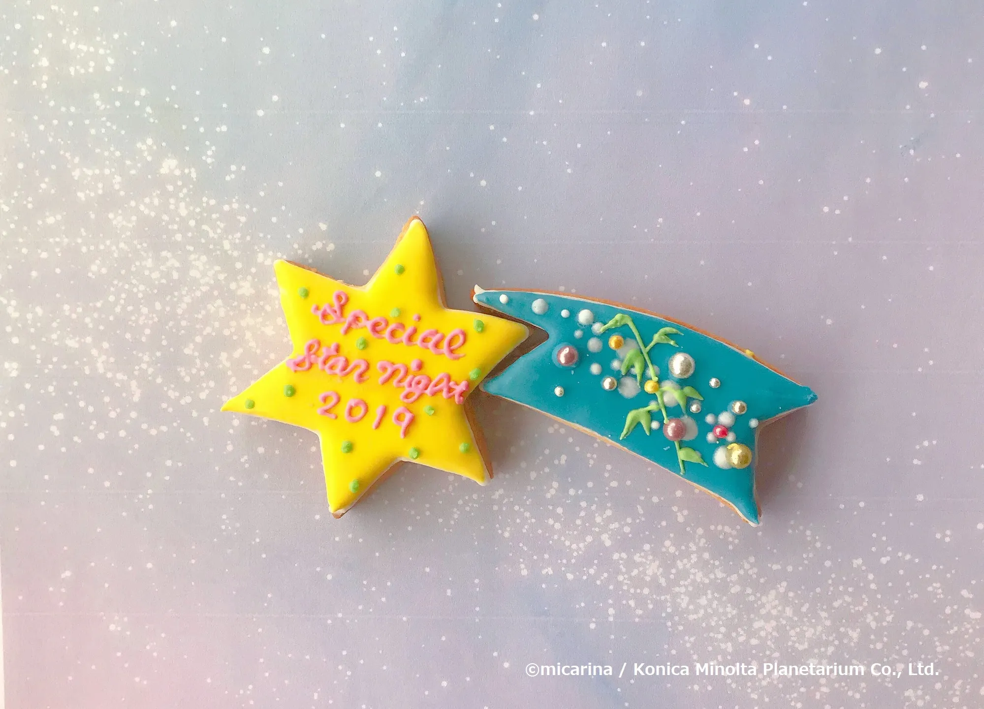 7月4日~7月7日の期間、“天空”、“満天”の17時以降の上映回でプレミアムシートご利用の方に1シートにつき1つ、コニカミノルタプラネタリウム限定非売品アイシングクッキー「世界でここだけ!可愛すぎて食べられない七夕ペアクッキー」をプレゼント!"忘れられない星空の思い出“をクッキーに込めた、コニカミノルタプラネタリウムからの七夕の贈り物です。忘れられない特別な七夕シーズンの夜をお過ごしください。