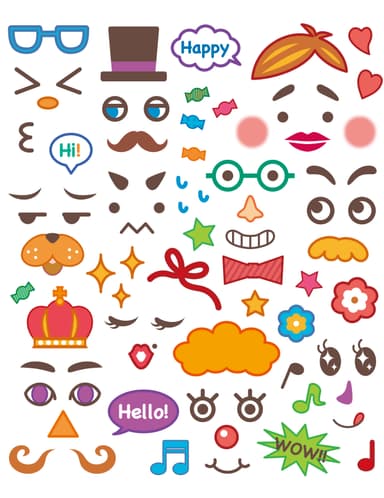 お子様と一緒にイラストを選んで飾り付けるだけで、普段の食事がかわいく大変身!動物や顔パーツの他、お誕生日にぴったりのお祝いイラストも便利です。