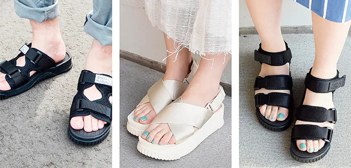 ブーム終焉で一度消滅したものの、フェスやアウトドアシーンでマニアに支持され続け2013年に復刻しました。当時のアーカイブを忠実に再現しつつ、ソールの強度やクッション性、履き心地現のよさはもちろん、デザイン面も現代風に進化して蘇り、夏のスタイルに欠かせない人気サンダルブランドの一つとなっています。