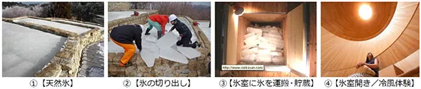 氷室内部の見学をはじめ、「冷風体験」の仕組みや氷を貯蔵する様子などをパネルご紹介します。
