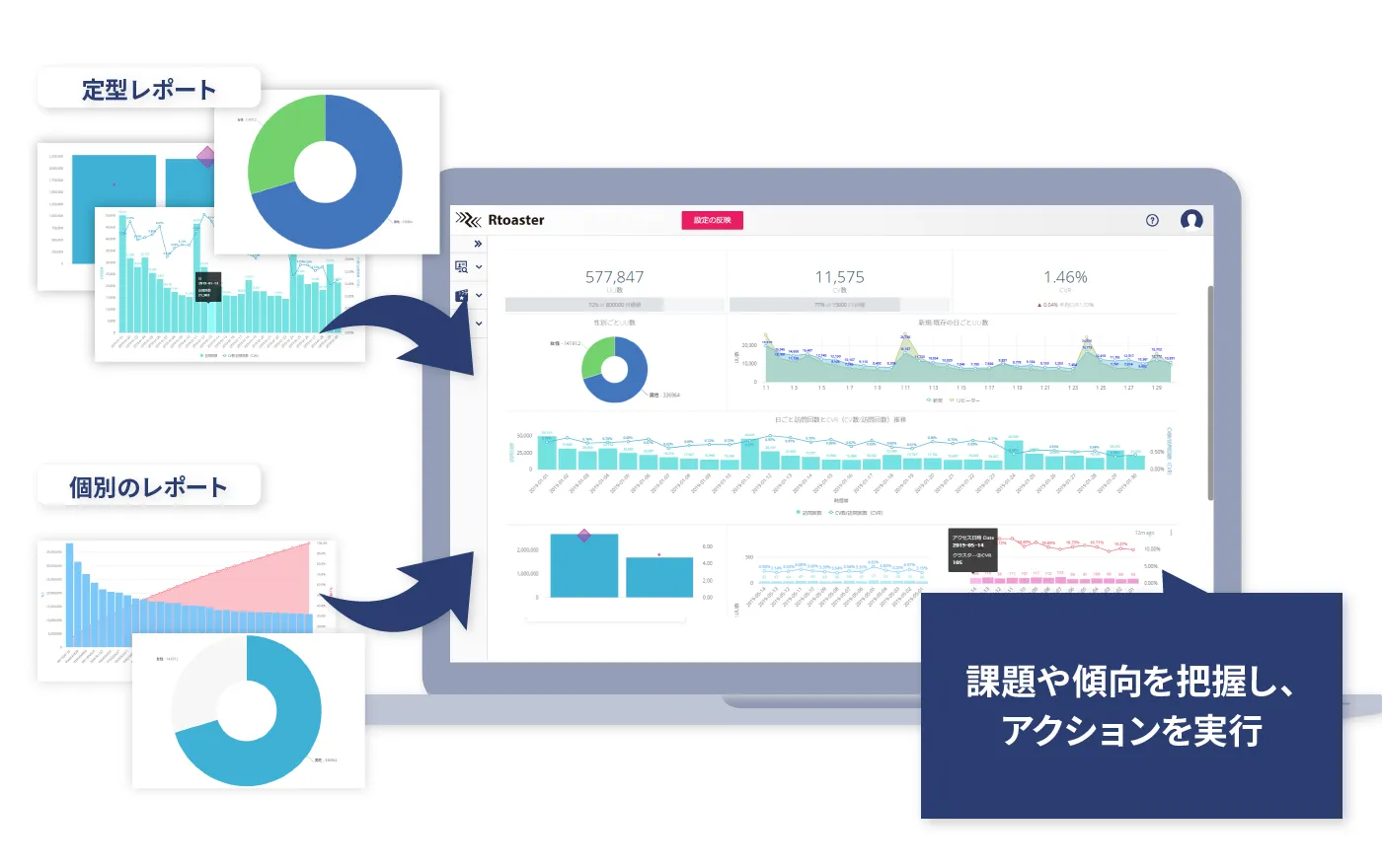 これにより、「Rtoaster」で取得したデータを単に可視化・分析するだけでなく、効果測定から施策(アクション)に繋げ、確実な成果創出を実現いたします。
