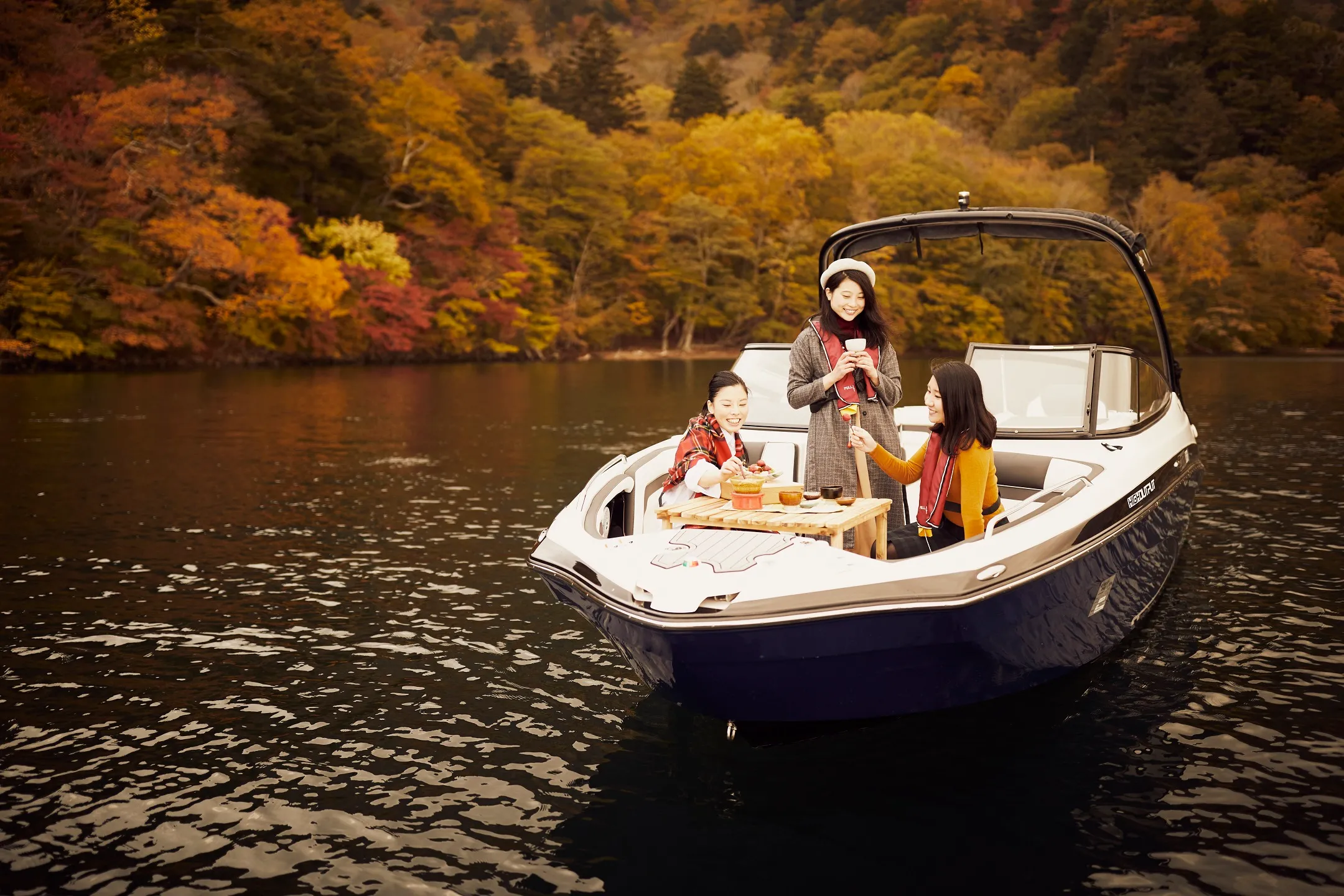 界 日光では、羊羹を温めて季節のフルーツをくぐらせて食べる、老舗の製餡所と作ったオリジナルスイーツ「羊羹フォンデュ」と、東照宮御用達の和菓子店「おしやま」の秋の風景を表現した和菓子を湖上で提供します。日光東照宮を参拝する日光詣が始まった江戸時代、銘水豊かな日光の地で作られた上質な羊羹はお土産として日光の銘菓となりました。赤黄緑の三色の紅葉を楽しめる全国的に名高い紅葉の名所「中禅寺湖」の景色を和菓子で表現しました。渋滞知らずの貸切モーターボートで、湖面に映り込む紅葉や男体山を染める色付いた木々の絶景を眺めながら職人技に舌鼓を打つ、そんな優雅な紅葉狩りが叶う1日1組限定のプランです。