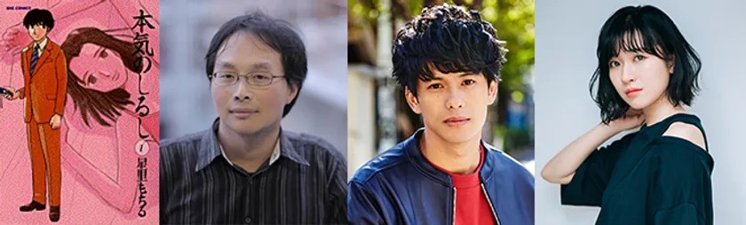 左から原作コミック1巻表紙、深田晃司監督、森崎ウィン、土村芳 (C)星里もちる・小学館