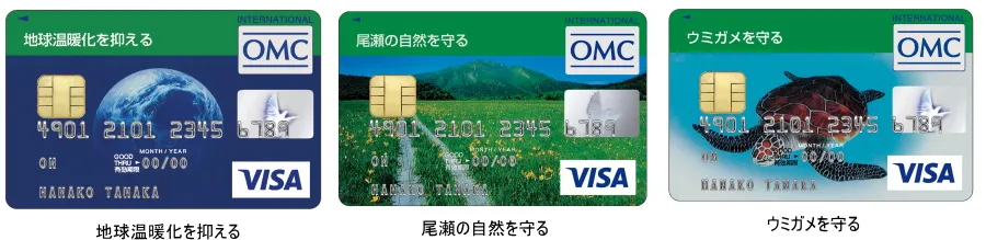 本カードには、地球環境保護をテーマにした12種類のカードがあります。「地球温暖化を抑える」といった地球全体のテーマから、「ウミガメを守る」「尾瀬の自然を守る」という特定の地域の環境や生態系の保全を対象としたものまで幅広いテーマを取り揃えており、この12種類の中から、関心のあるテーマを選んで入会していただけます。