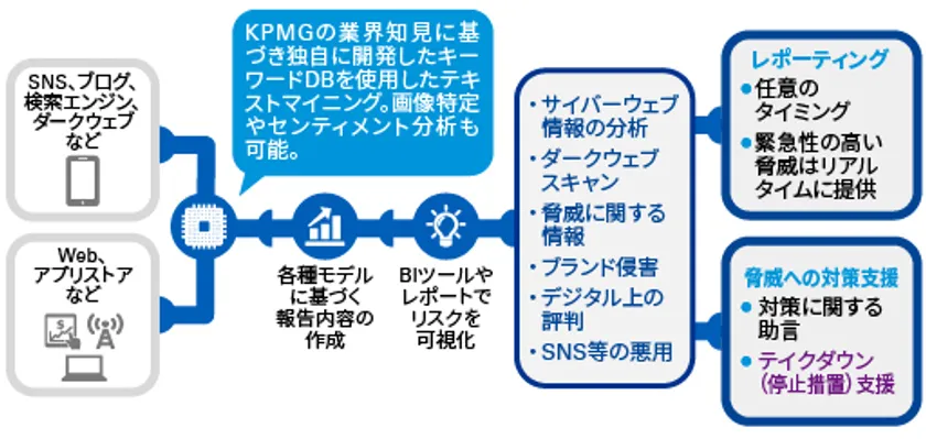 KPMGコンサルティング株式会社(本社:東京都千代田区、代表取締役社長:宮原 正弘、以下、KPMGコンサルティング)は、インターネット上の様々なメディアやコンテンツによるブランド毀損リスク「サイバーブランドリスク」の発見・対処を行う、「サイバーブランドリスク対処支援サービス」の提供を開始しました。
