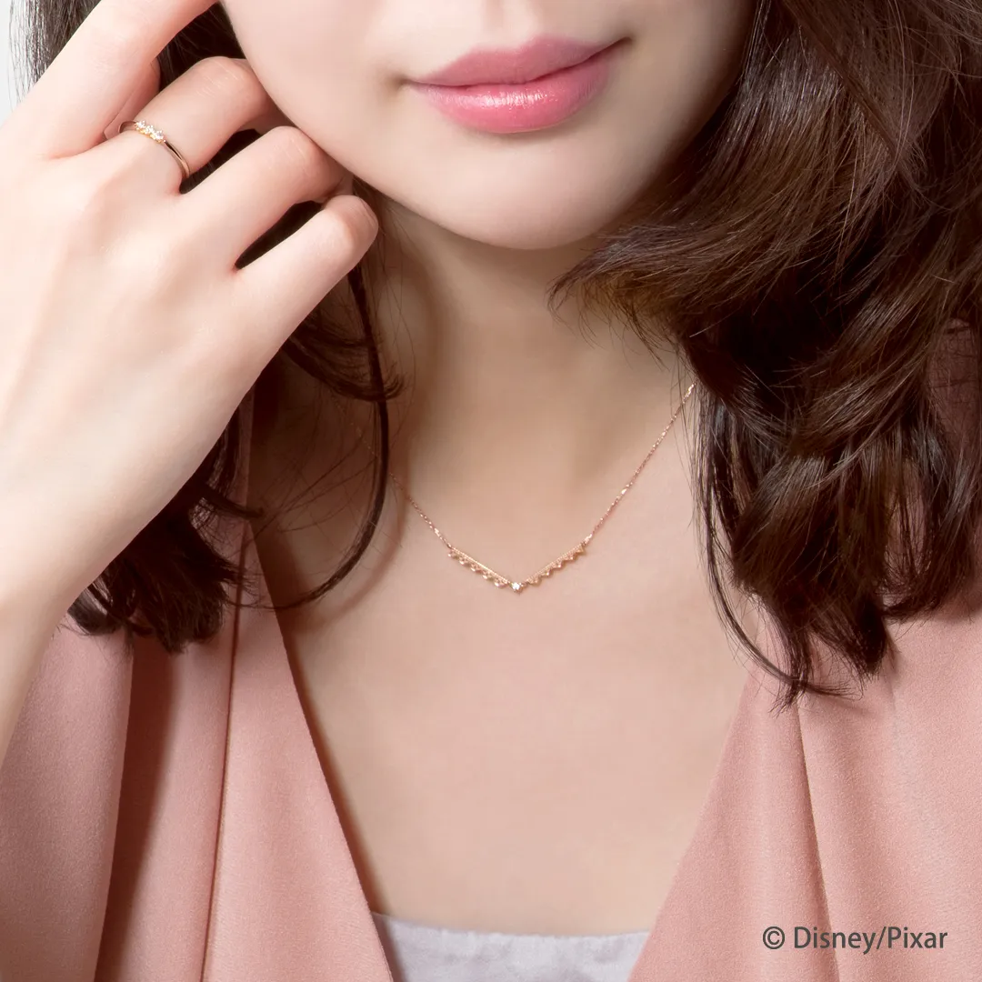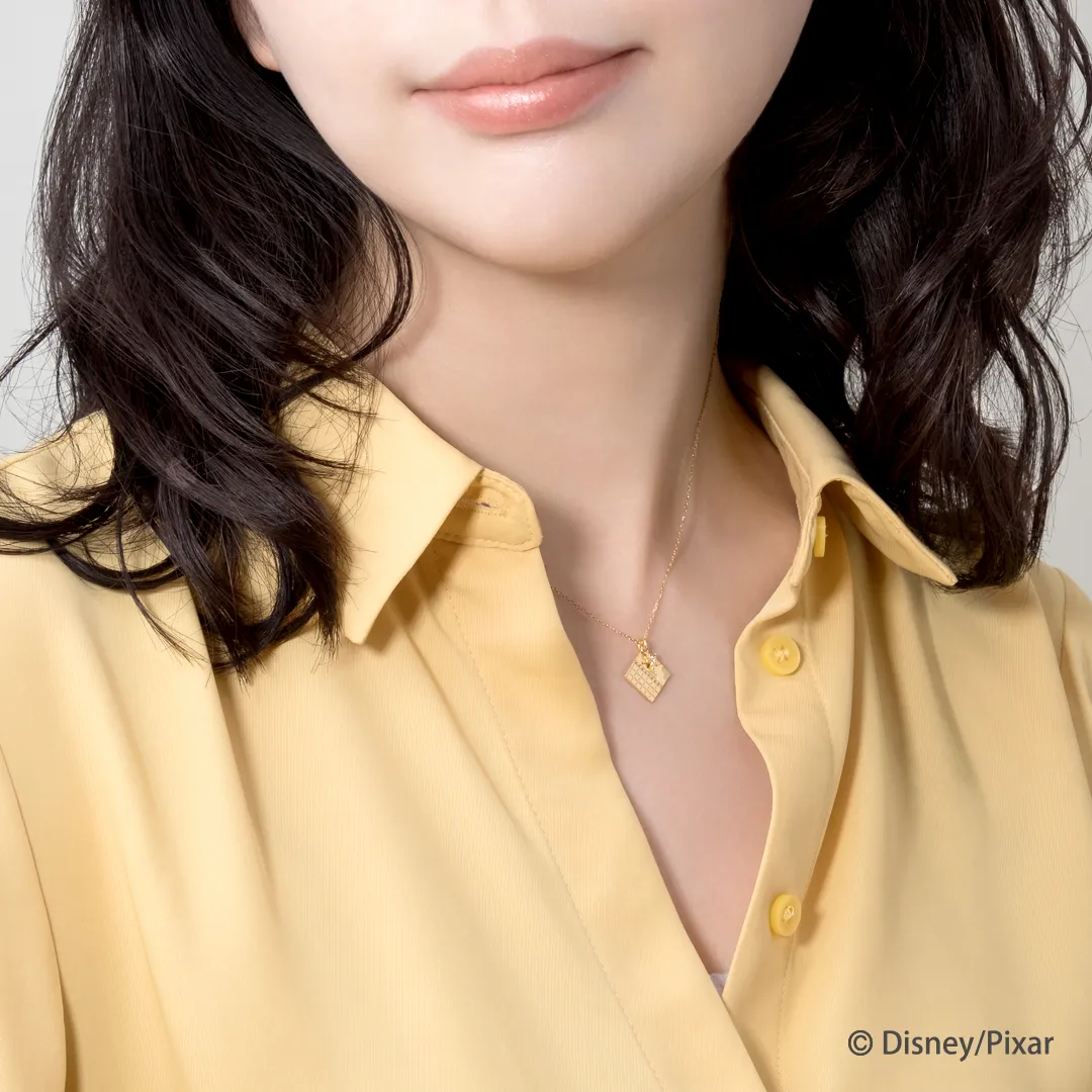 ウッディのシャツとベストをモチーフに。ダイヤモンドが輝く保安官バッジがクール!細かな模様やテクスチャの違いがさり気なくもデザインのアクセントになっています。どんなときも仲間と助け合い、ピンチを切り抜けるウッディ。ネックレスを身に着けることで、彼と一緒に冒険をしている気分になれそう。