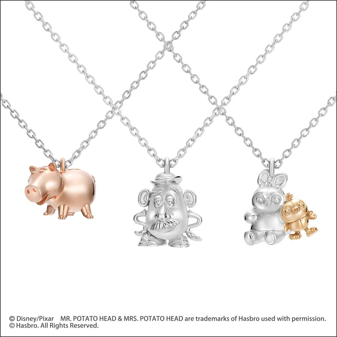 ミスター・ポテトヘッドをデザインしたネックレス。360度立体的に作られた、コロンとした存在感がチャームポイント。(物語とは違い、)顔のパーツは取れない作りなので、安心して一緒にお出かけできます。 <ケイウノオンラインショップ限定>8,800円(シルバー)