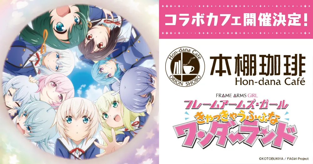 劇場アニメ「フレームアームズ・ガール~きゃっきゃうふふなワンダーランド~」公開と、コミック「フレームアームズ・ガールカナガタ・デイズ」単行本発売に合わせ、今年もオリオン書房ノルテ店 本棚珈琲でコラボカフェが開催決定!