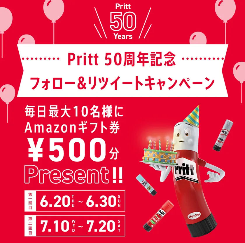 スティックのり プリット 50周年記念 フォロー&リツイートキャンペーンを6月20日(木)より実施