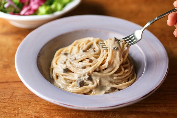 きのこのおいしさとクリーミーなコクが楽しめるソース。食感が楽しいエリンギと、旨みたっぷりのえのき・マッシュルームのおいしさが存分に楽しめます。